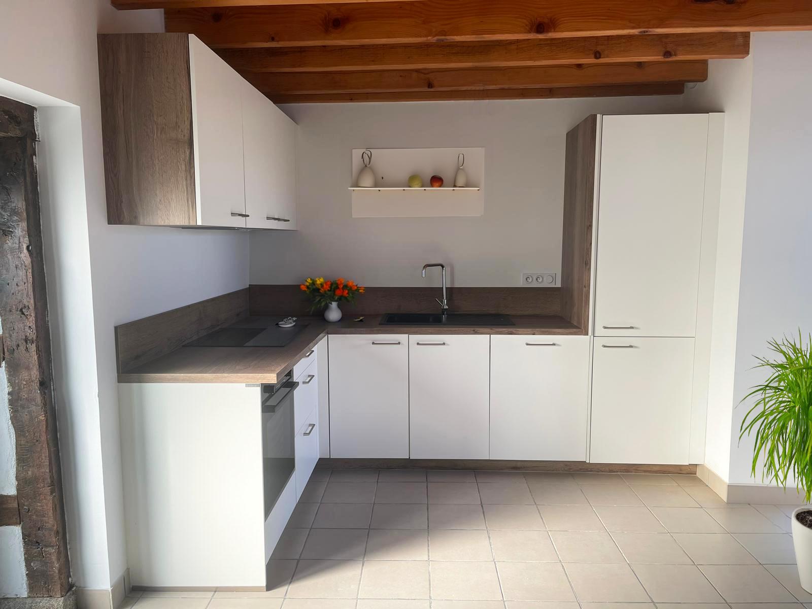 • remplacement de la cuisine par une cuisine équipée fonctionnelle et dans l’air du temps.